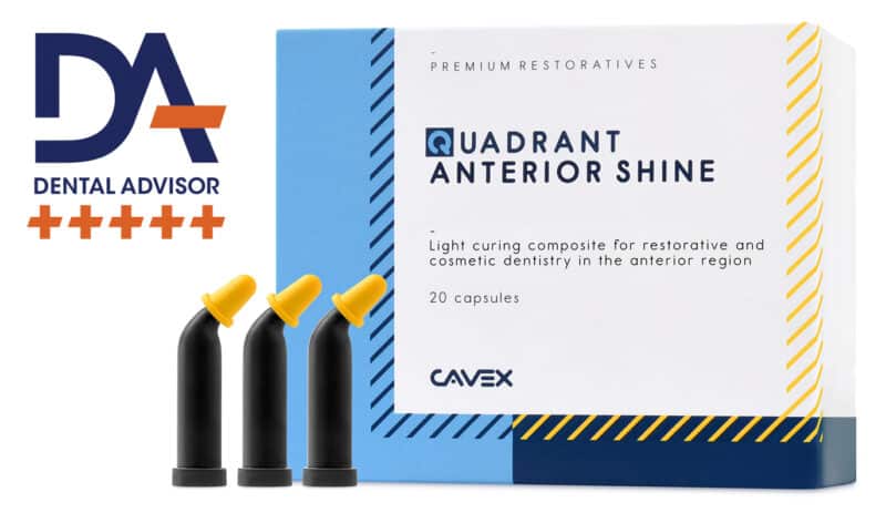 We value the opinion of the dentist. That is why we let The Dental Advisor test our Quadrant Anterior Shine composite. After years of research and more than 500 placed restorations by a team of dentists, this composite restorative material received a clinical rating of no less than 98%, which corresponds to the maximum rating of 5 pluses. Professionals praise the durability and aesthetic properties of the material.
