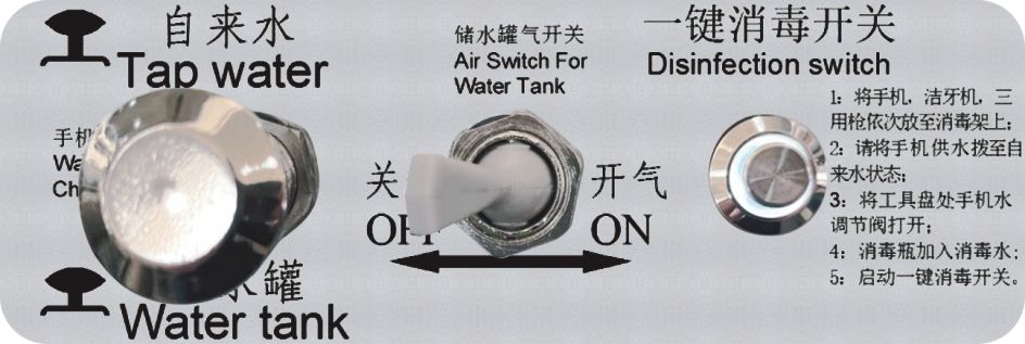 -Dental unit will be powerd off automaticly after disinfection. Easy and assured, one-click disinfection, free control, reliable, safe and effective.