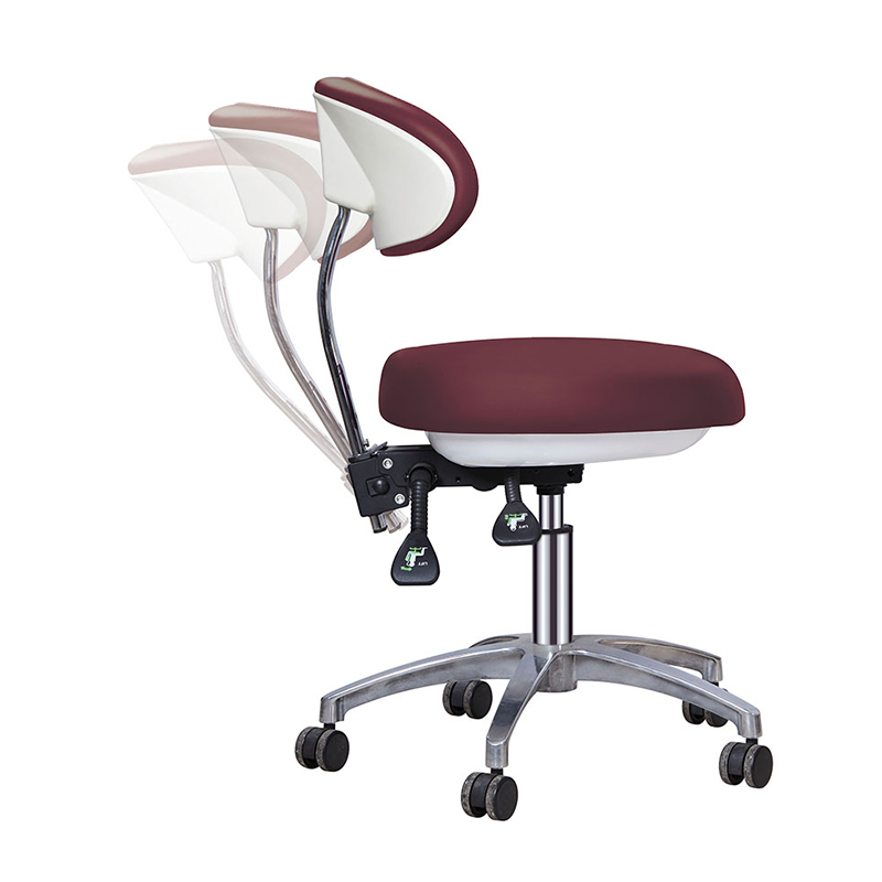 -Dental stool C with 360°mute universal wheel which is flexible to move, cushion lifting, backrest pitching. It’s provides the dentist with good support for the haunch and waist.
