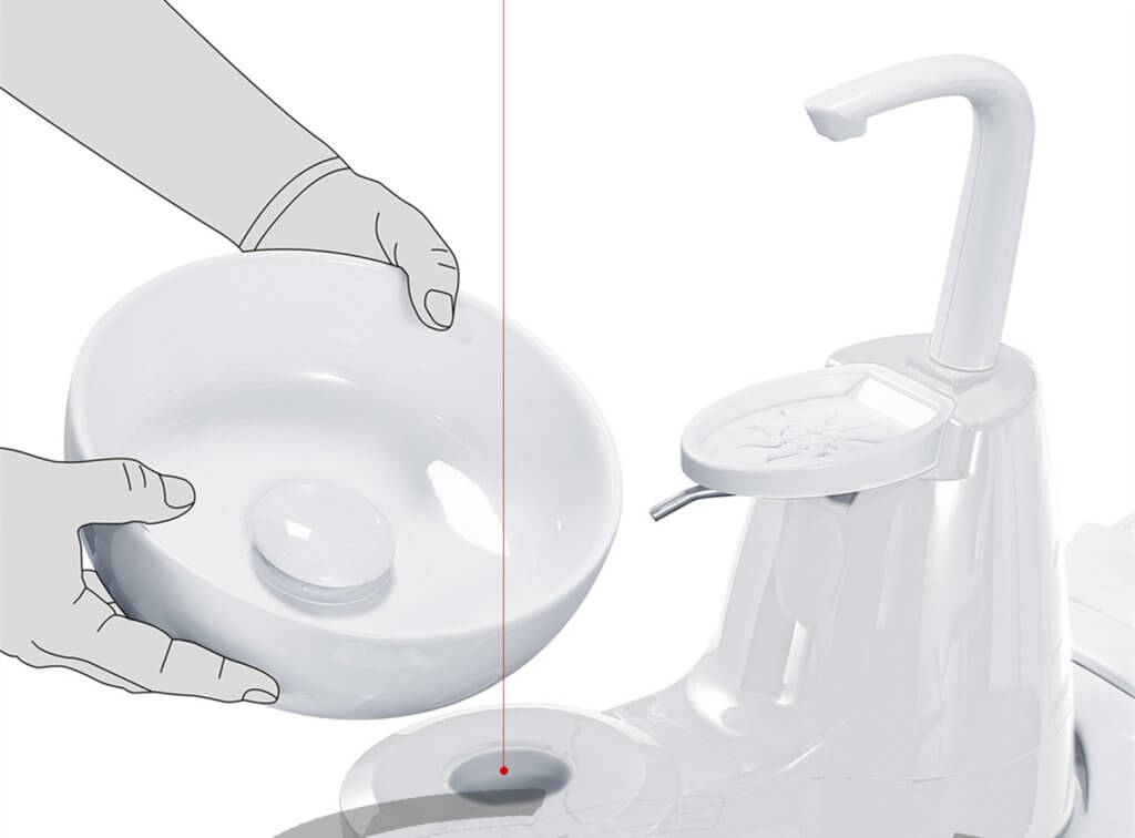 Luxury spittoon.The ceramic spittoon can be rotated to a position suitable for the patient to spit.