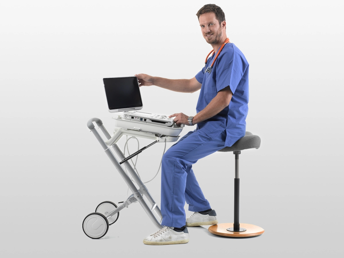 High-end, portable, multidisciplinary ultrasound unit with an innovative and ergonomic design.
