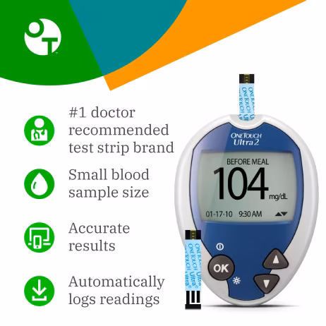 Only Works With OneTouch Ultra 2 Meter: These blood glucose test strips are compatible with the OneTouch Ultra 2 meter. With a large, backlit display screen and readings in just five seconds, this blood glucose monitoring system is designed to help you manage blood glucose.