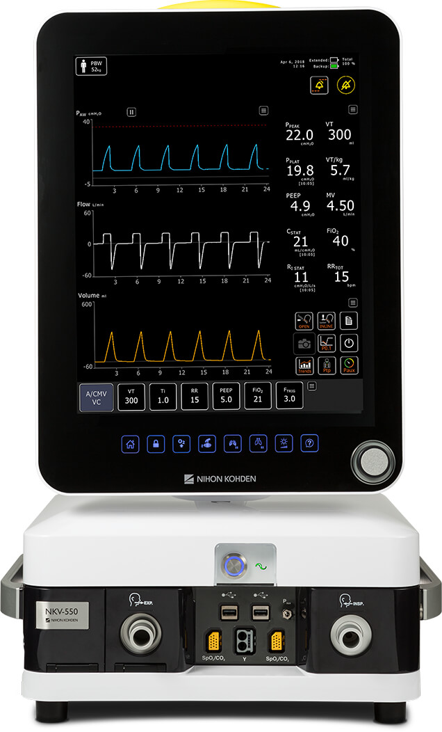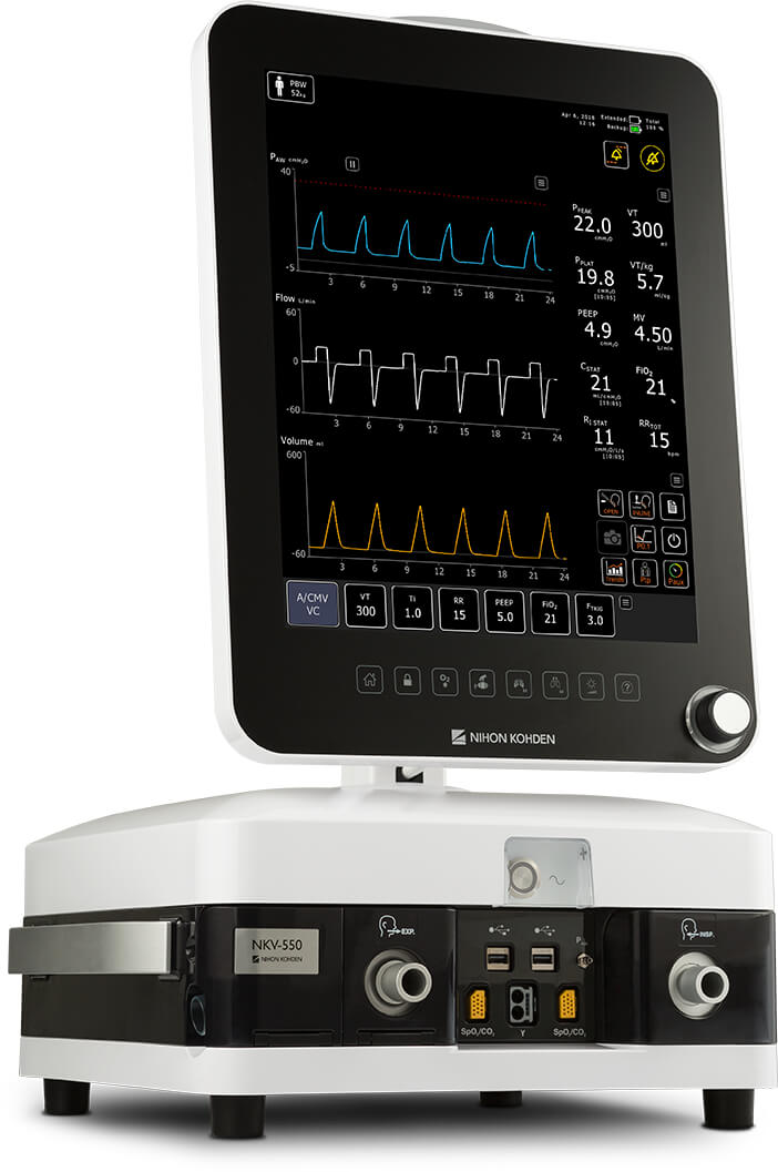 Nihon Kohden’s overriding philosophy inherent to the NKV-550 design is to Treasure Every Breath®. Our focus is to provide clinically relevant innovations and solutions for patients requiring mechanical ventilation. The NKV-550 Ventilator System is suitable for neonatal through adult patients and is equipped with a range of applications and modes, including invasive and non-invasive ventilation, O2 therapy, and airway care apps.