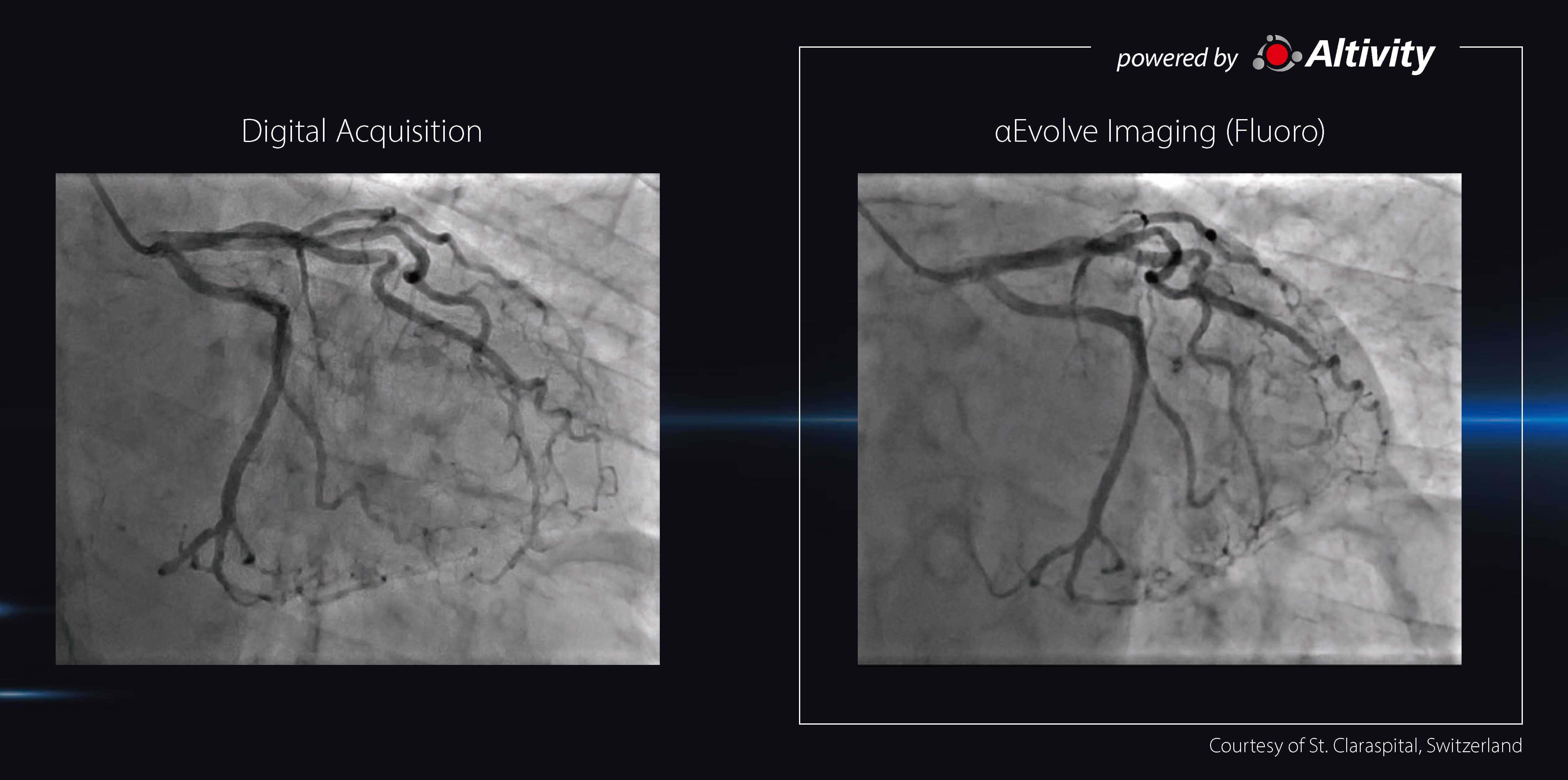 Clear fluoroscopic imaging enhances confidence and can help improve clinical outcomes and procedural efficiency. αEvolve Imaging achieves high-quality images through Deep Learning*1-based noise reduction and multi-frequency processing.