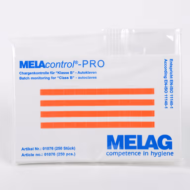The refill pack for the MELAcontrol PRO system. The package contains 250 indicator strips and a seal for the screw cap.