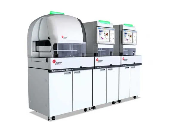 Connect up to three DxH 900 hematology analyzers with a DxH Slidemaker Stainer II (SMS II) to form scalable and customized workflow solutions, compatible with DxA 5000 and DxA Fit 5000 lab automation and REMISOL Advance middleware