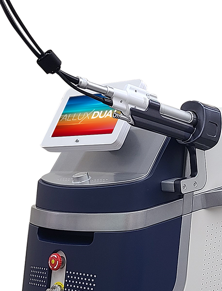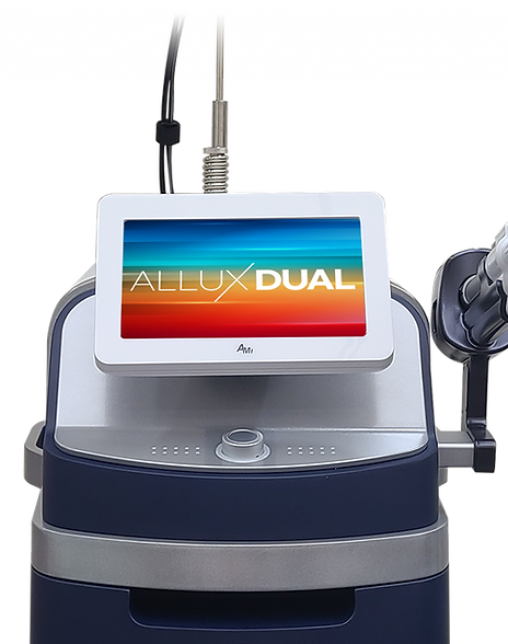 The ALLUX DUAL, developed by AMI, is a long-pulsed laser device offering dual wavelengths—1064 nm and 755 nm—within a single platform, making it ideal for a variety of treatments such as hair removal, vascular lesions, and pigmented lesions.