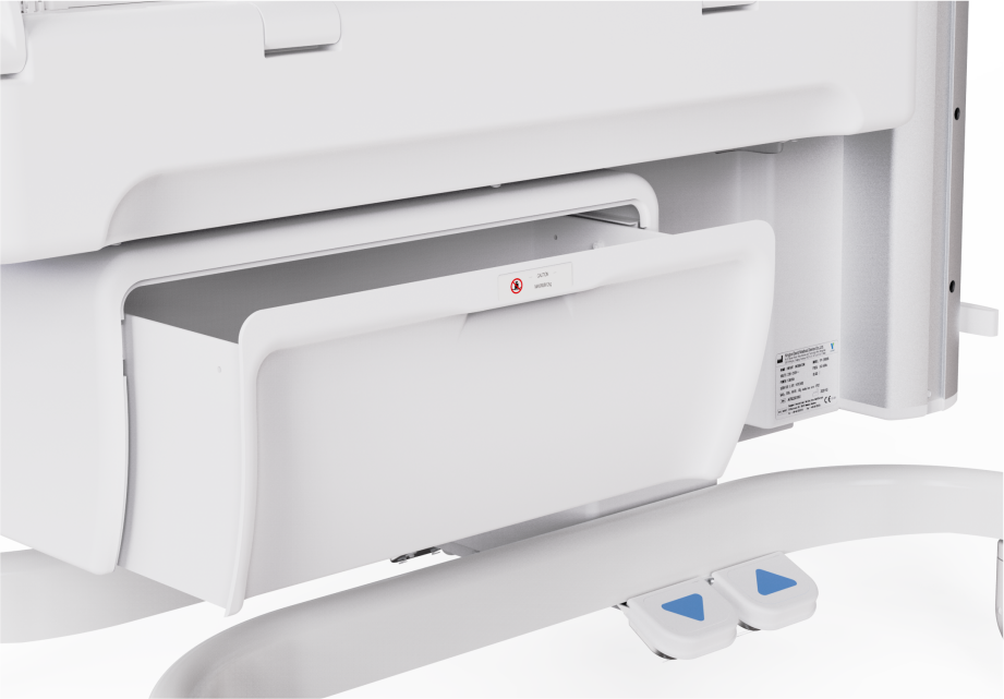 The two-way pull-out storage drawer can accommodate a variety of small medical devices, and the external storage basket can properly accommodate cables and other accessories.