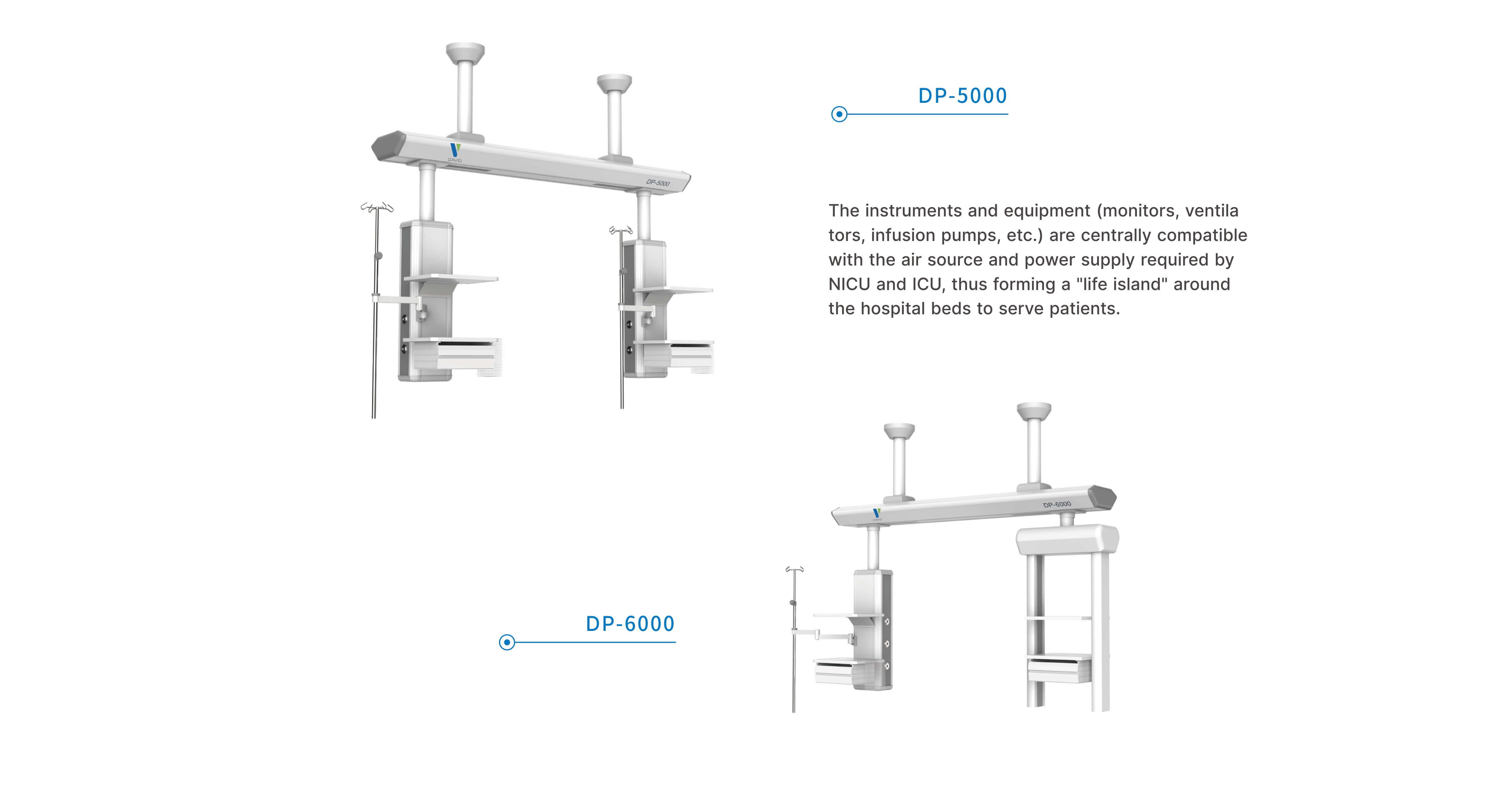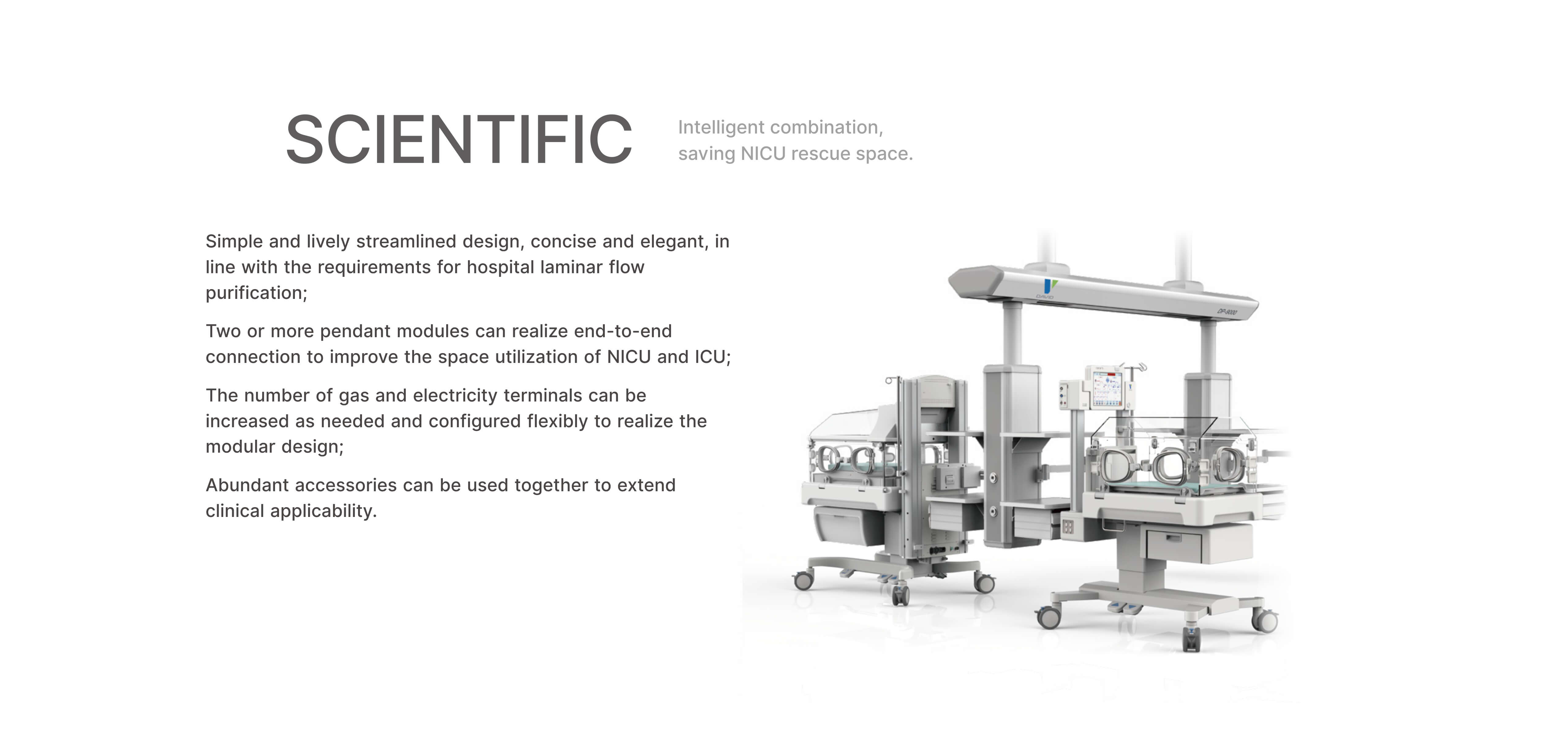 Two or more pendant modules can realize end-to-end connection to improve the space utilization of NICU and ICU;