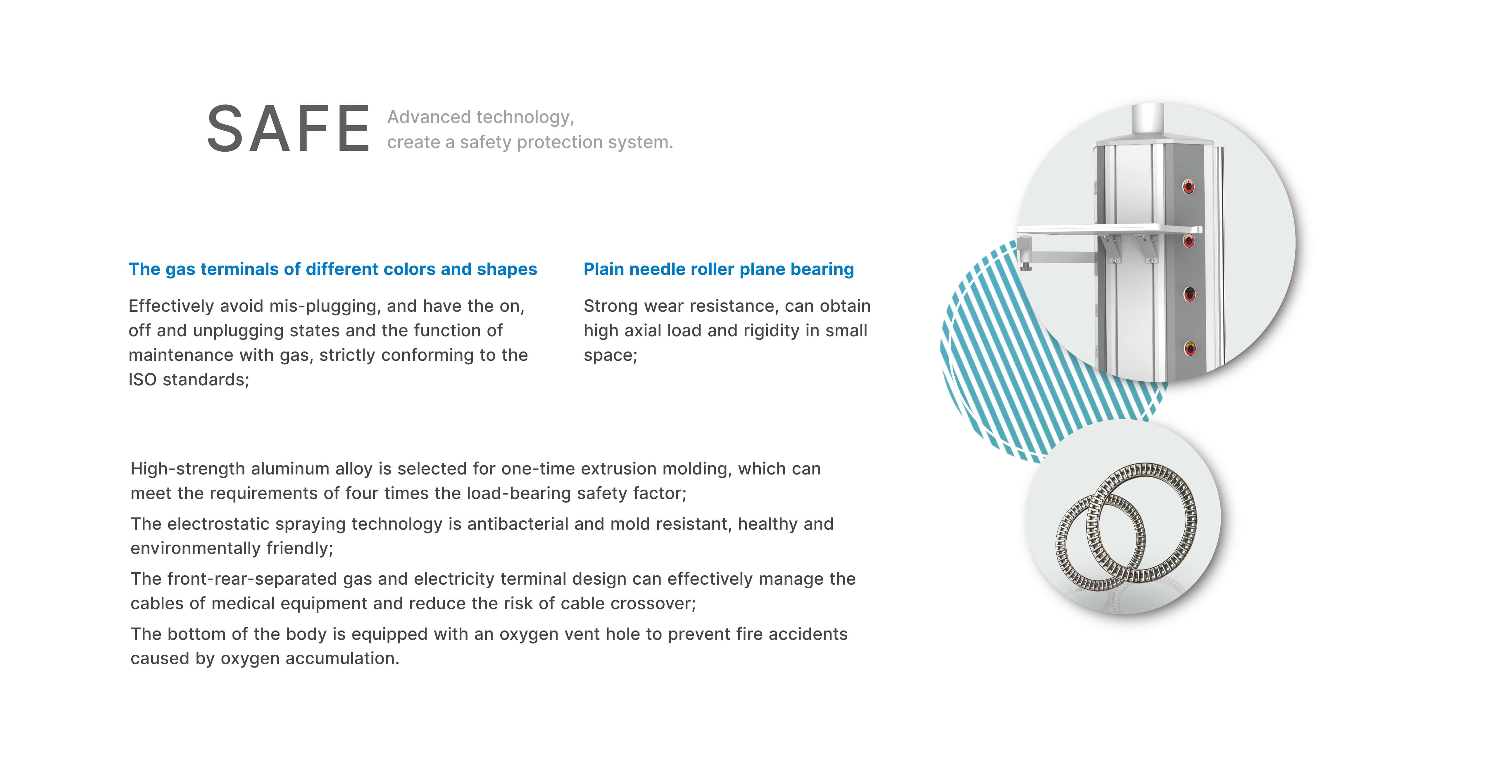 The front-rear-separated gas and electricity terminal design can effectively manage the cables of medical equipment and reduce the risk of cable crossover;
