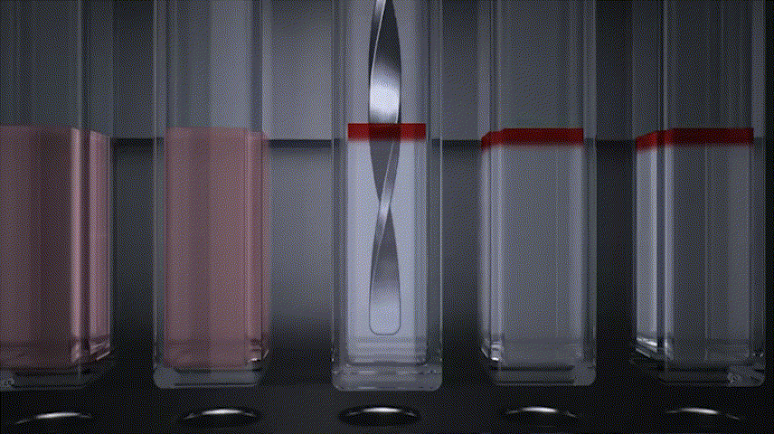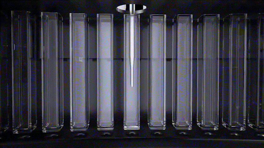 The negative-pressure washing system reduces residual volume in reaction cuvettes to less than 1 μL