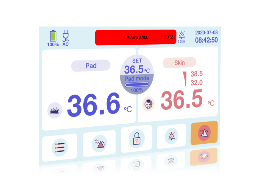 1) Features integrated real-time monitoring and display of skin temperature and mattress temperature.