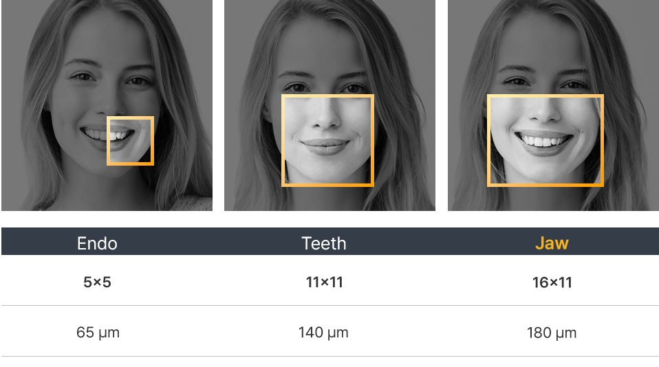 One product with various FOV settings from 5X5 to 20X11, depending on purpose and application.