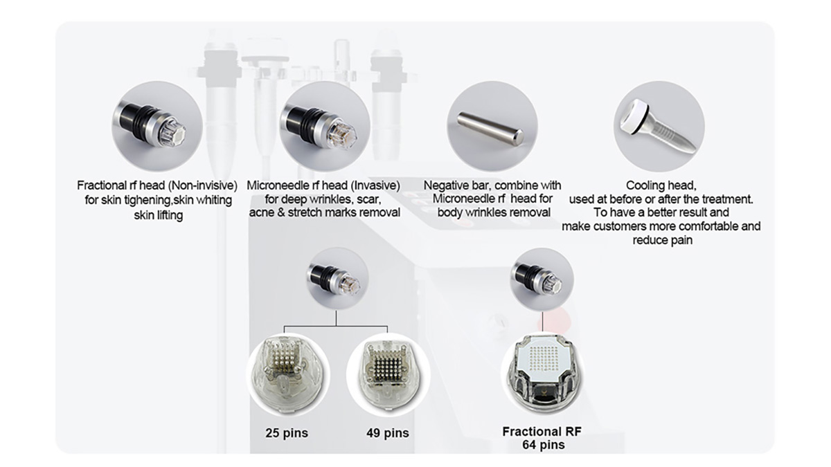 FRACTIONAL RF applicator for non-invasive wrinkle reduction, suitable for the patients fear of needle, no down time, recovery soon.