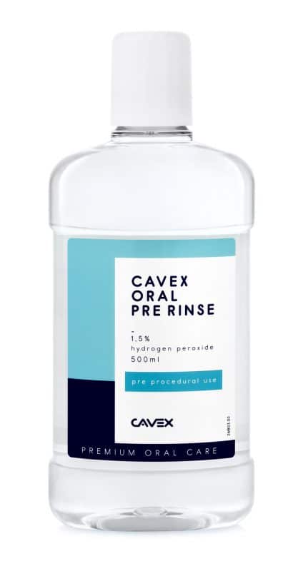 Cavex developed Oral Pre Rinse by combining scientific findings with years of experience in the field of hydrogen peroxide and mouthwashes. Cavex Oral Pre Rinse is a pre-procedural mouth rinse with 1.5% stabilized hydrogen peroxide. 30 to 60 seconds of flushing before treatment significantly reduces the risk of any viruses spreading, including the coronavirus.