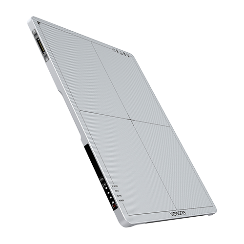 - One flat panel detector of 17”x17” size is installed in the wall bucky stand and one portable wireless flat panel detector of 14”x17” size is installed in the table with rotating bucky device ( The portable detector can be extracted, and used for table top work)