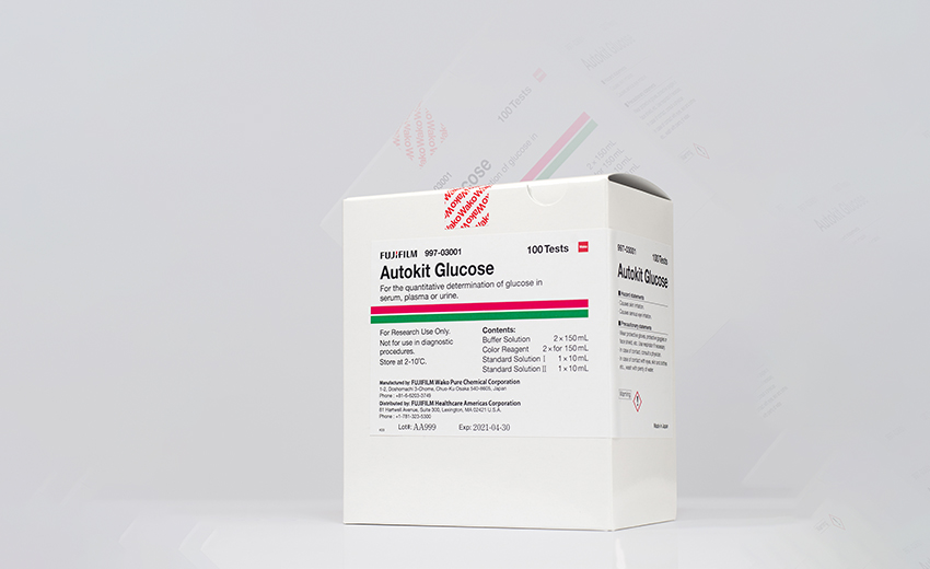 FUJIFILM Wako has developed an enzymatic method (Autokit Glucose) for the measurement of glucose that combines the traditional glucose oxidase method with the enzyme mutarotose to facilitate the conversion of a-D-Glucose to b-D- Glucose.