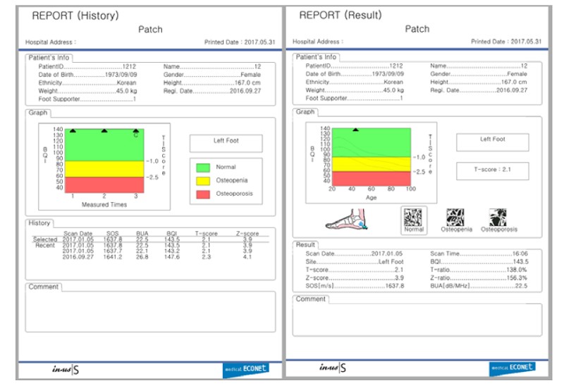 • Quick and easy measurement of the bone density of the Calcaneus to estimate the risk of fracture