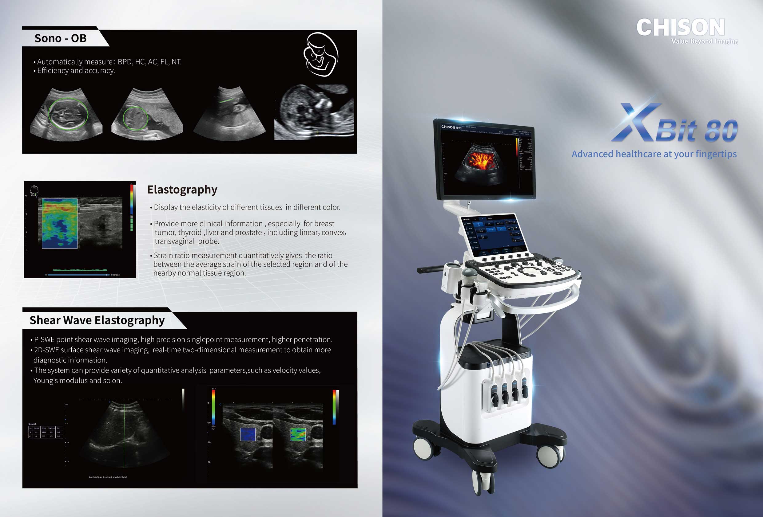 -P-SWE point shear wave imaging, high precision singlepoint measurement, higher penetration.