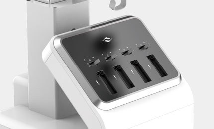 4 oblique transducer ports on the front side permit users to easily plug and unplug transducers.