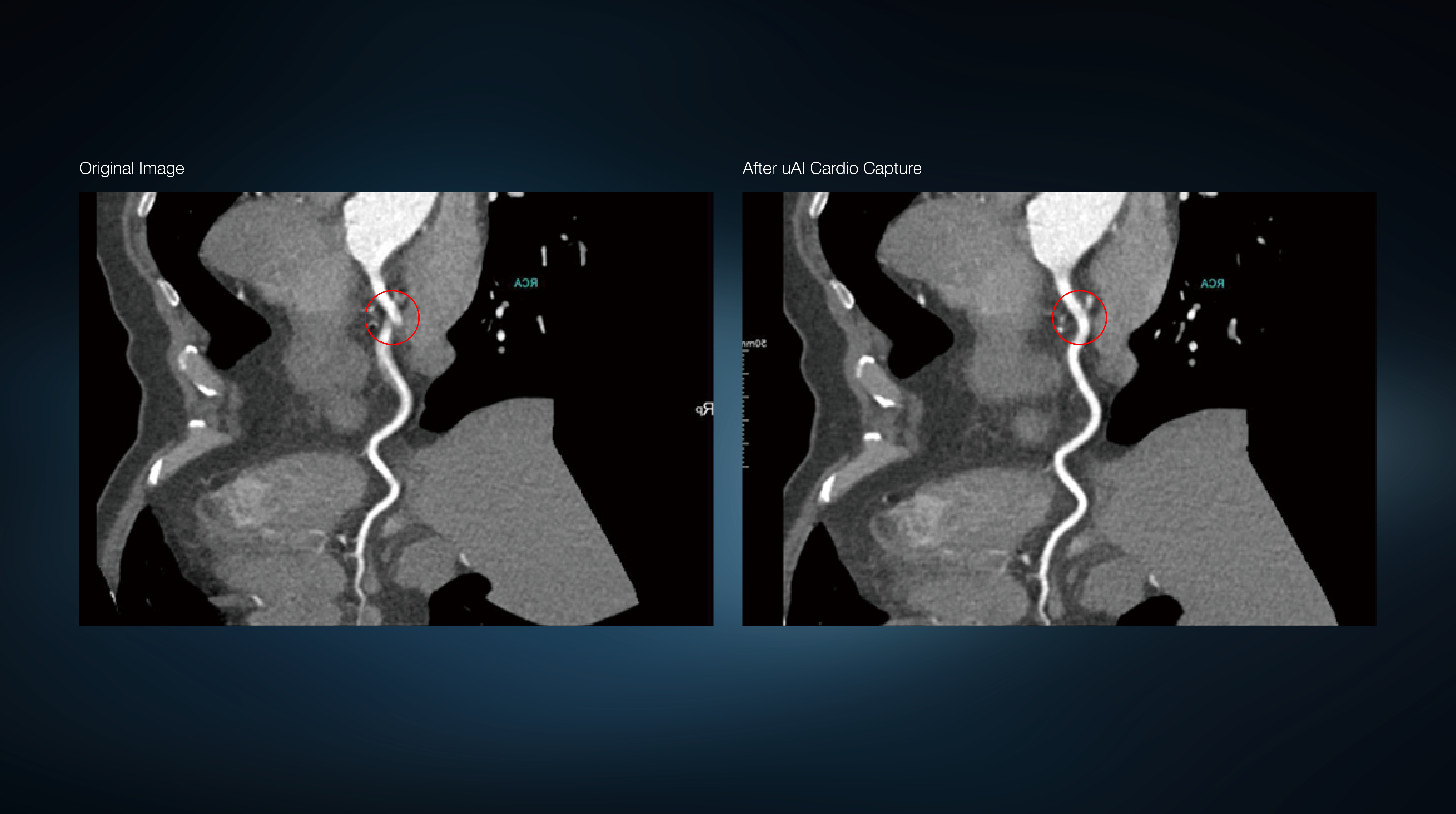 - uAI Cardio Capture , Using an intelligent motion correction with an AI-empowered coronary artery algorithm, we have improved the temporal resolution to 25 milliseconds.