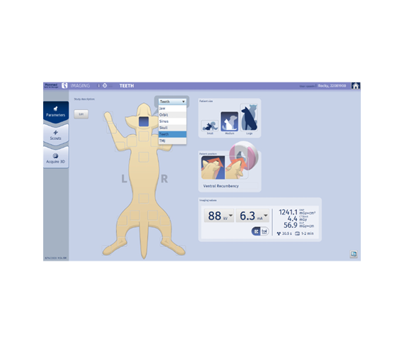Planmed Verity VET is equipped with an easy-to-use graphical user interface and accompanied by a dedicated workstation for viewing the captured images from all angles in Planmeca Romexis® veterinary imaging software. The mobile positioning table of the scanner enables precise, fast and effortless image acquisition of the patient’s teeth, skull and extremities.