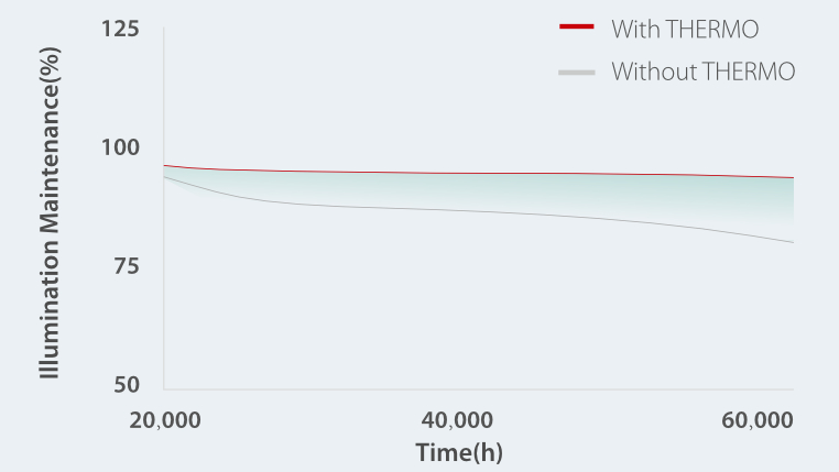 -The compensation and optimization of attenuation characteristic curve of long-lasting LED lamp beads ensure stable illumination as long as 60,000 hours