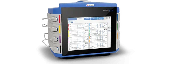 The PeriFlux 6000 tcpO2 stand-alone transcutaneous monitor is equipped with up to eight sensors of tcpO2.