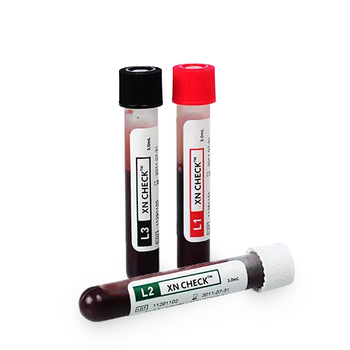 XN CHECK is available in three different concentrations. XN-CHECK level 2 covers the normal range, XN-CHECK level 1 is used for the abnormal low range and XN-CHECK level 3 monitors the abnormal high rage.