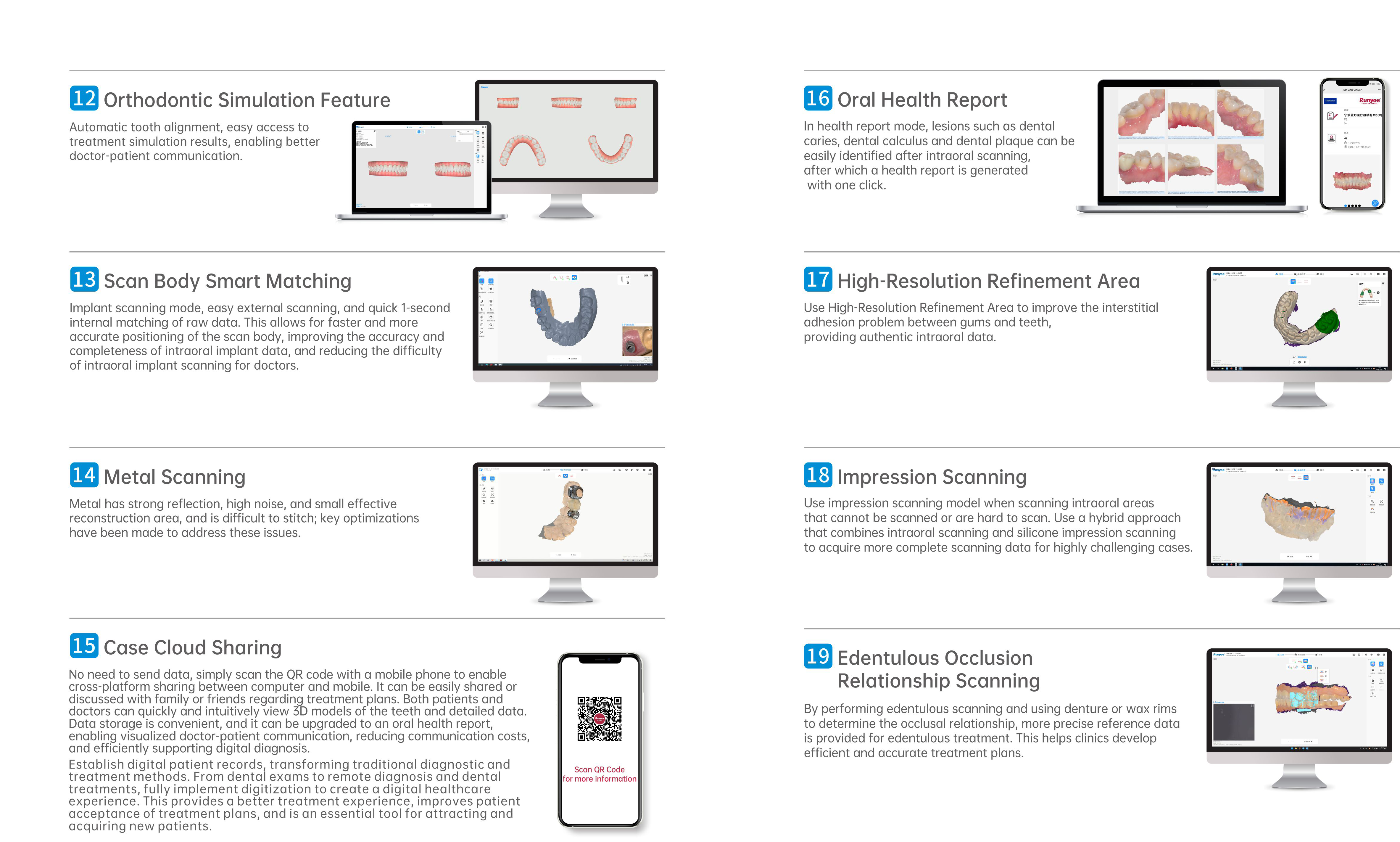 -Scanning Accuracy: Single Crown<10um, Full Arch<20um