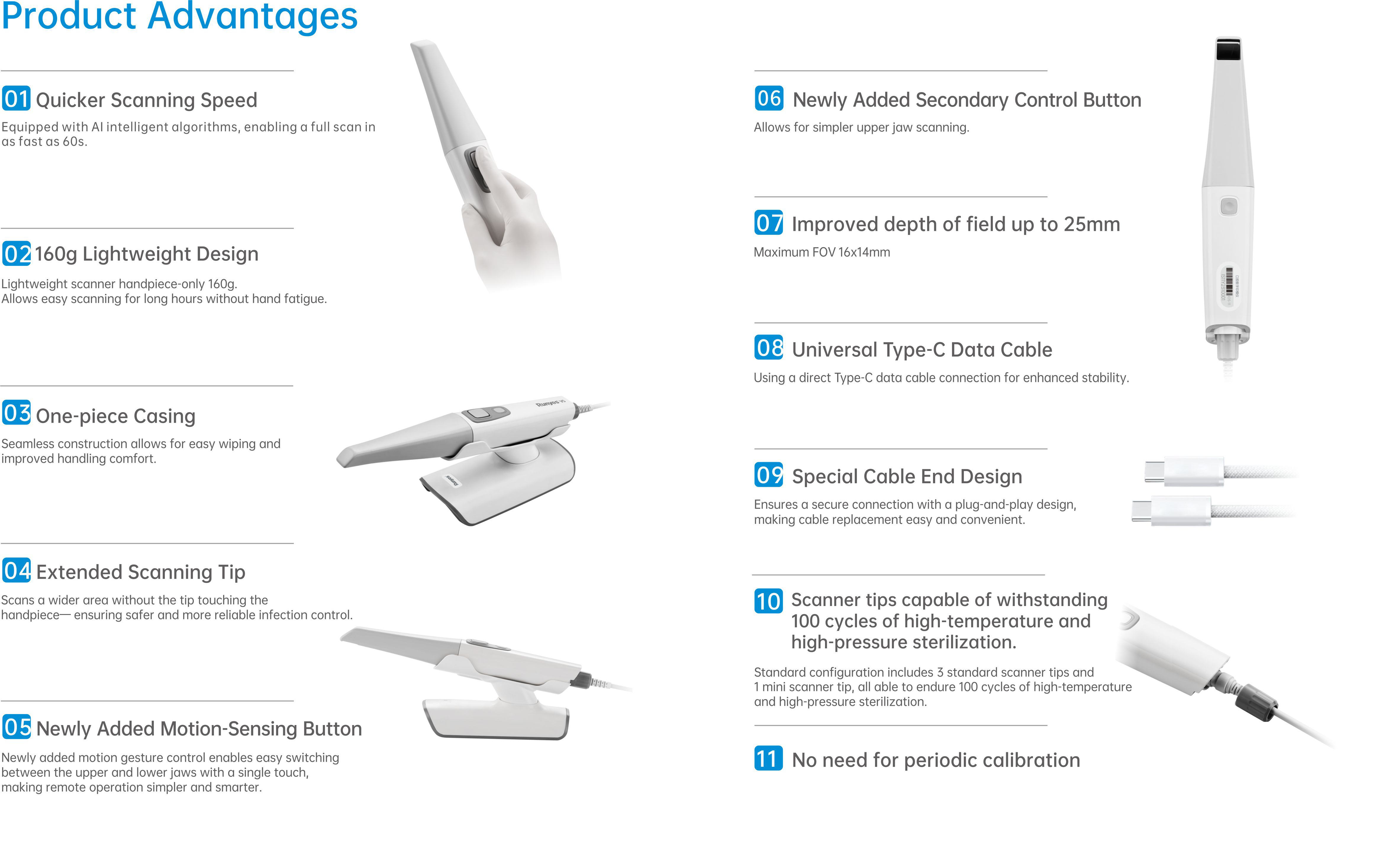 Scans a wider area without the tip touching the handpiece- ensuring safer and more reliable infection control.