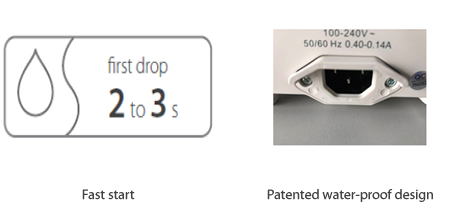 -Fast start function: First drop delivered within 2-3 seconds, ensuring immediate therapy -for even the lowest rates.