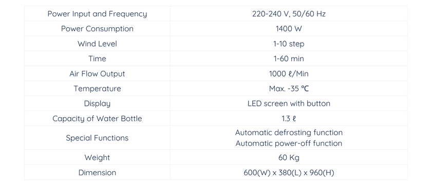 -Cooling air temperature adjustable up to -35 degrees celsius
