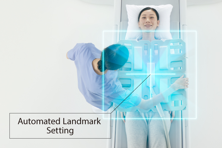 The system matches the PAS information registered in advance on the Tablet UX or MR console with the detected singular points on the patient's body, identifies the anatomical region, and displays the landmark to be scanned on the intelligent monitor.