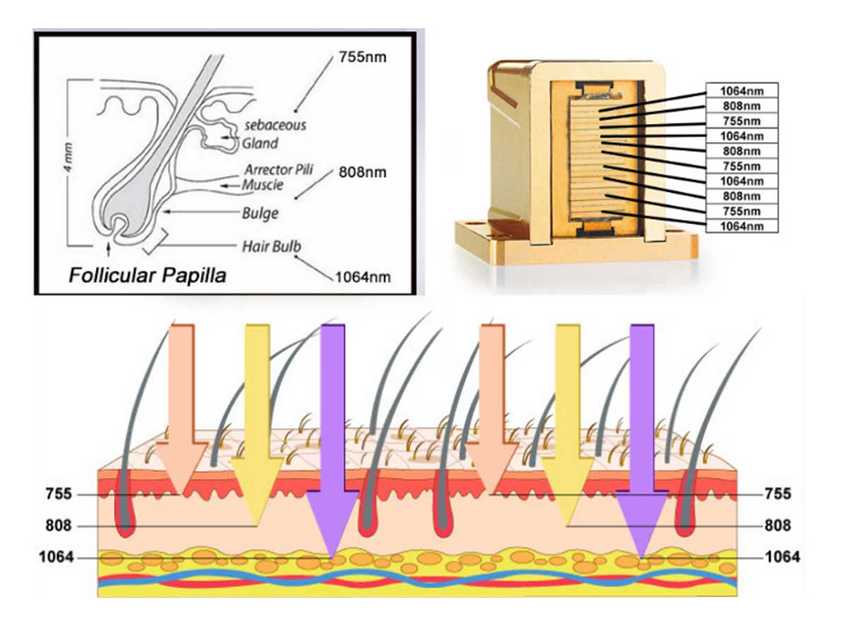 1. Combine with 808nm,1064nm and 755nm 3 wavelength in one diode triple wavelength laser