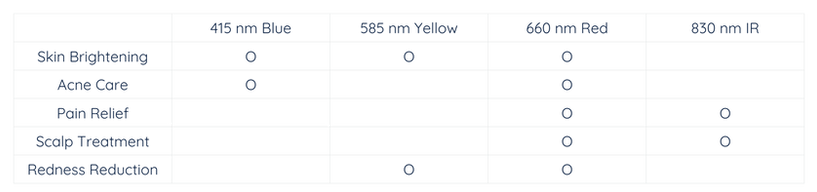 -4 distinct wavelengths - 415 nm, 585 nm, 660 nm, 830 nm
