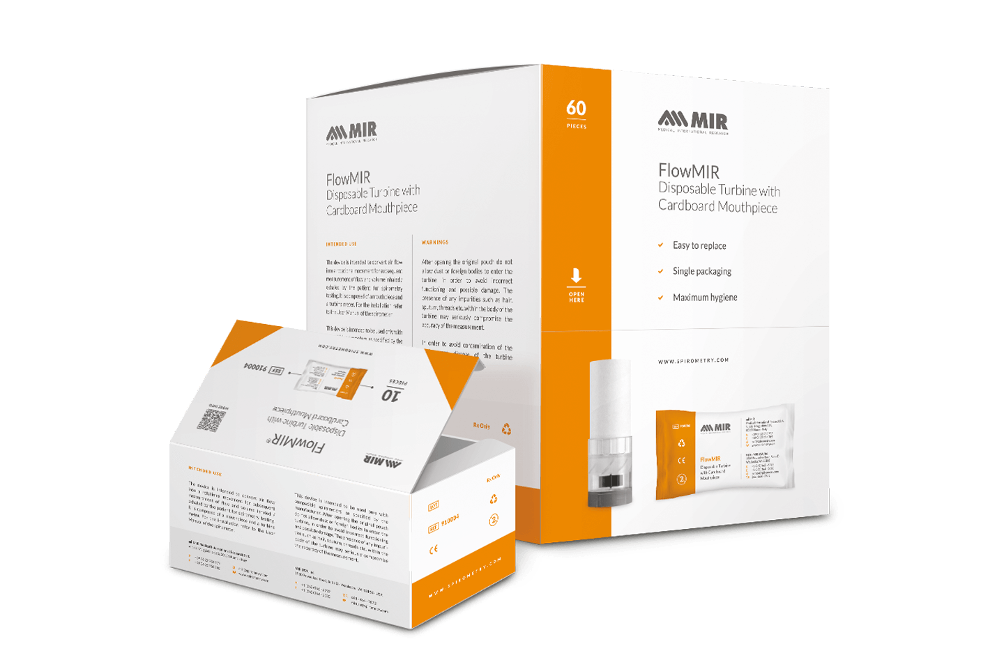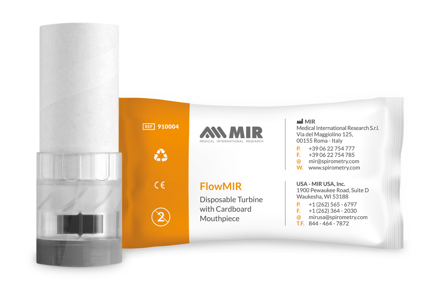 - FlowMIR® turbines are patented single-use devices by MIR – Medical International Research, specifically designed to ensure accurate, reliable, and safe spirometry measurements.