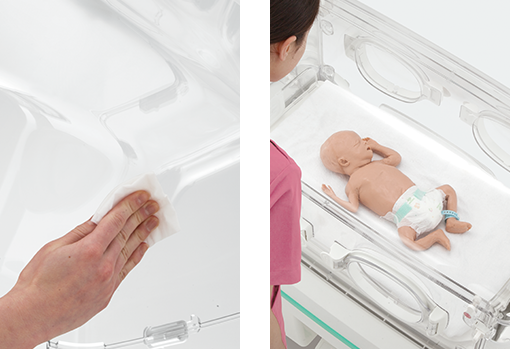 Jointless hood minimizes the chance that surfaces are left unwiped/unclean. Jointless design ensures a visibility of the inside of the incubator.