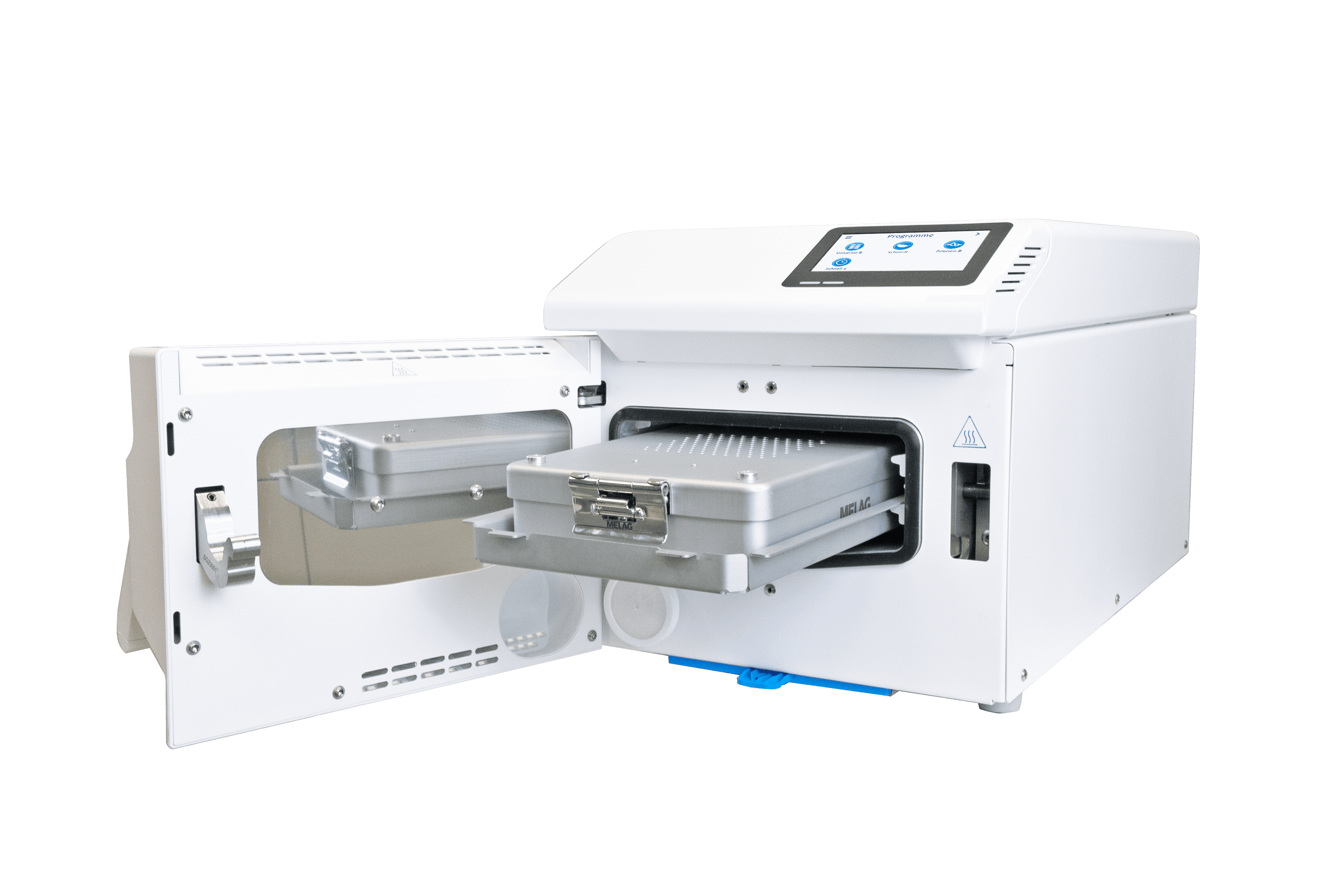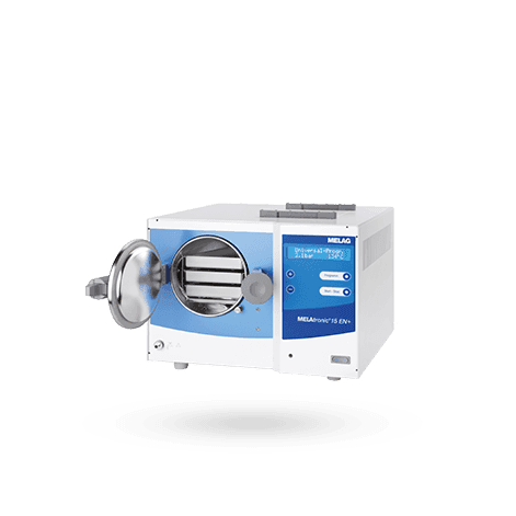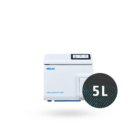 With a chamber volume of 5 litres, the stand-alone class B autoclave offers you enough space for the safe sterilisation of up to 2 kg of instruments on 2 trays or 1 MELAstore Box Compact.