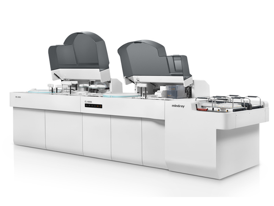 The SAL 9000 Chemistry & Immunoassay Integrated System delivers high throughput of chemistry and immunoassay testing by integrating Mindray BS-2000 Chemistry Analyzer and CL-6000i Chemiluminescence Immunoassay Analyzer, and new Sample Processing line SPL 2000. With patented automatic serum analysis design, SAL 9000 not only helps you optimize the management of lab space and manpower, it also offers highly reliable test results.