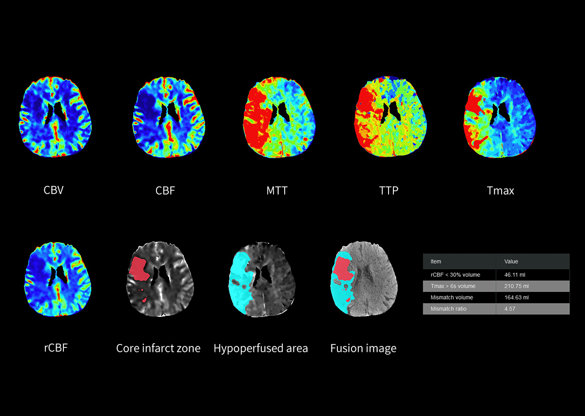 - Whole-brain dynamic perfusion imaging, with a scanning length of 14 cm, combines wide-ranging dynamic perfusion imaging with an intelligent post-processing software, which can rapidly and accurately present quantitative analysis results for whole-brain functional studies.