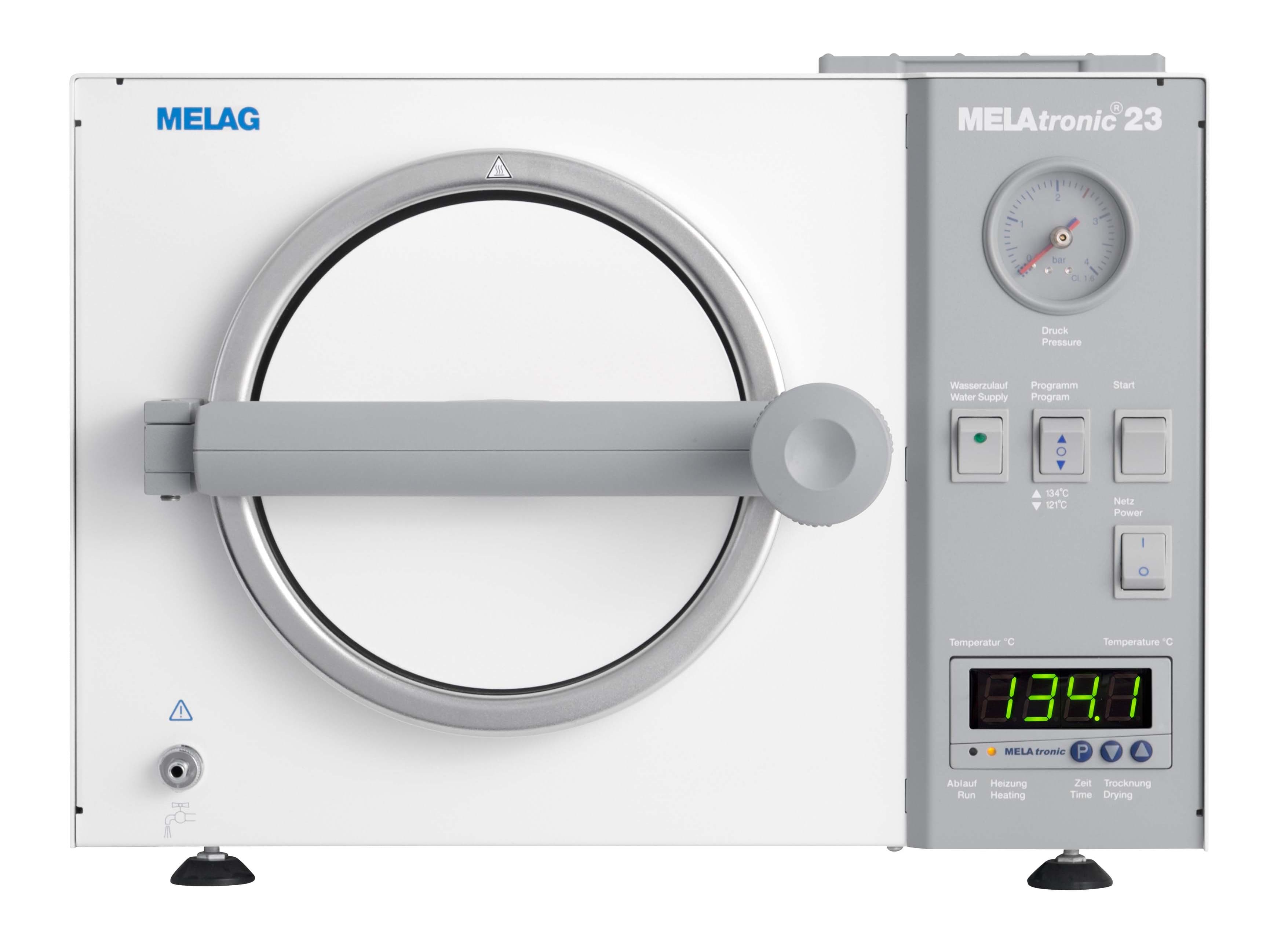 The MELAtronic 23 is equipped with two sterilization programs. The first program generates 134 °C / 2.1 bar for quick instrument drying. The second enables the sterilization of temperature-labile materials in a sensitive fashion with 121 °C / 1 bar.