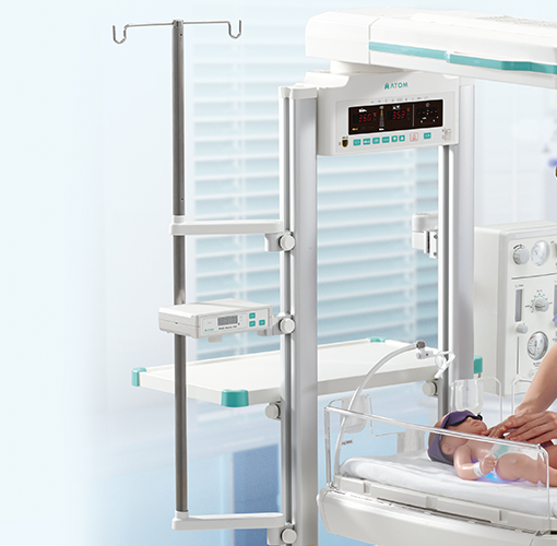 A range of peripheral devices such as our resuscitation unit, phototherapy unit, examination light and weight monitor can be mounted through F-Rail.