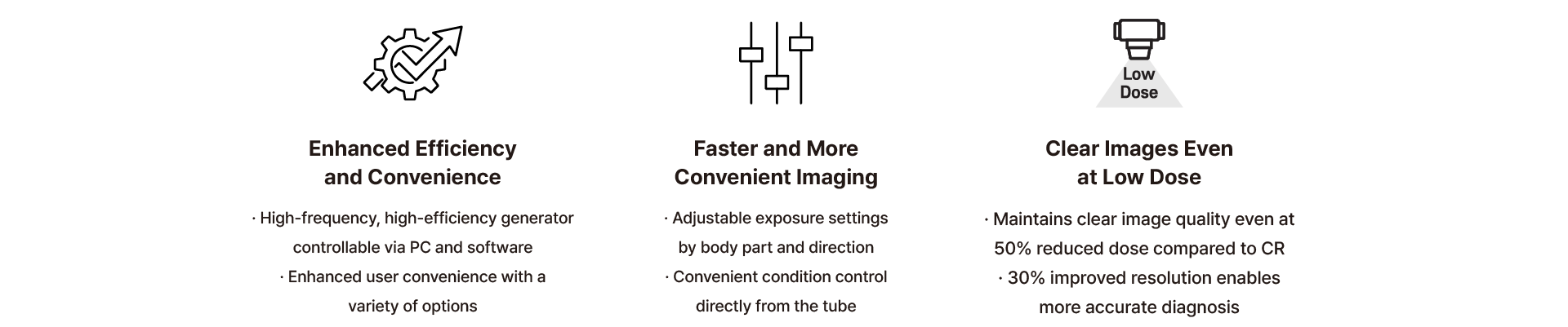 Combined with optimized X-ray equipment, it maximizes image quality, allowing for fast and accurate diagnosis of multiple patients.
