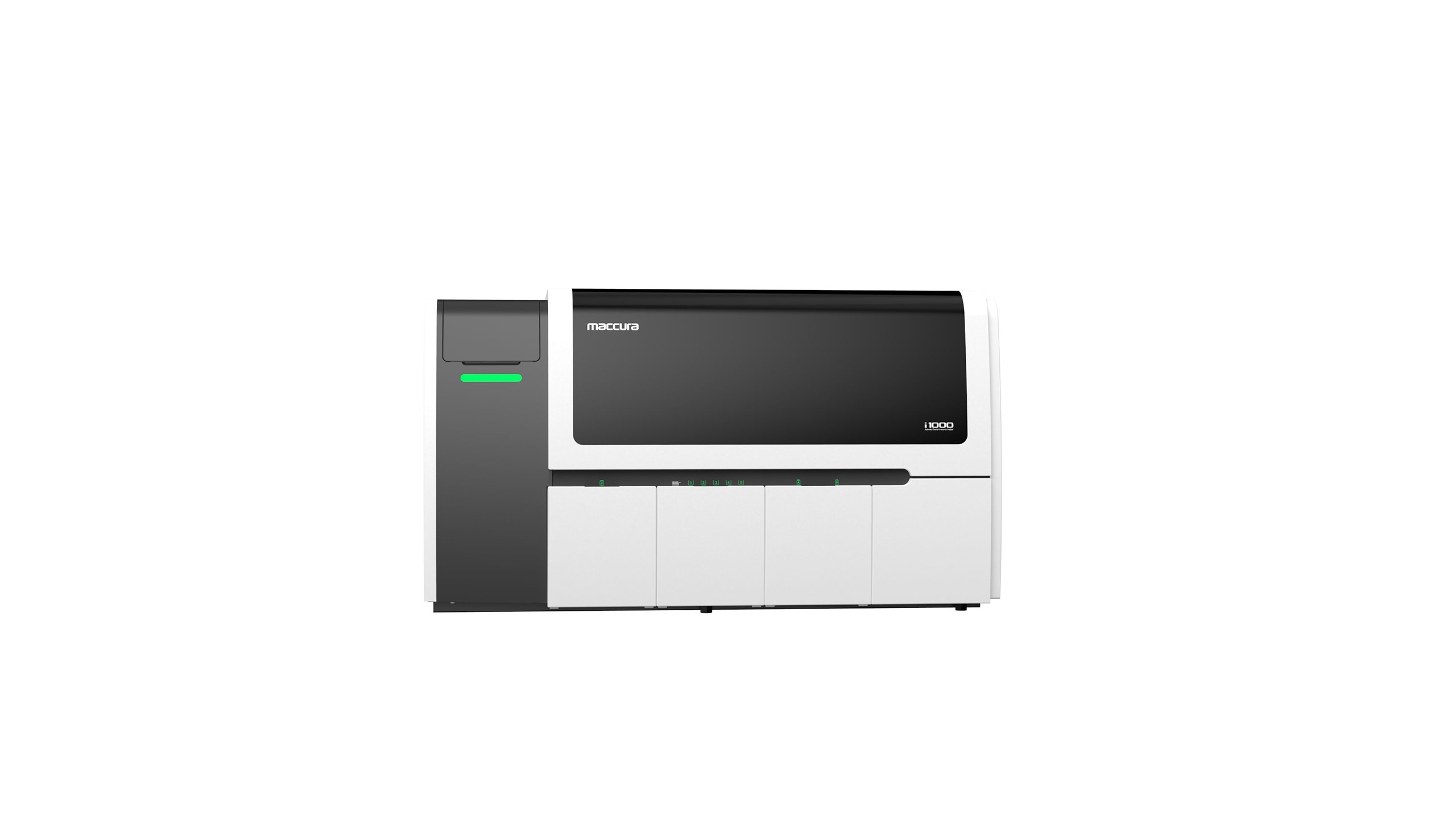 i 1000 covers an area of less than 1m2 with 30 refrigerated reagent positions and 50 sample positions.