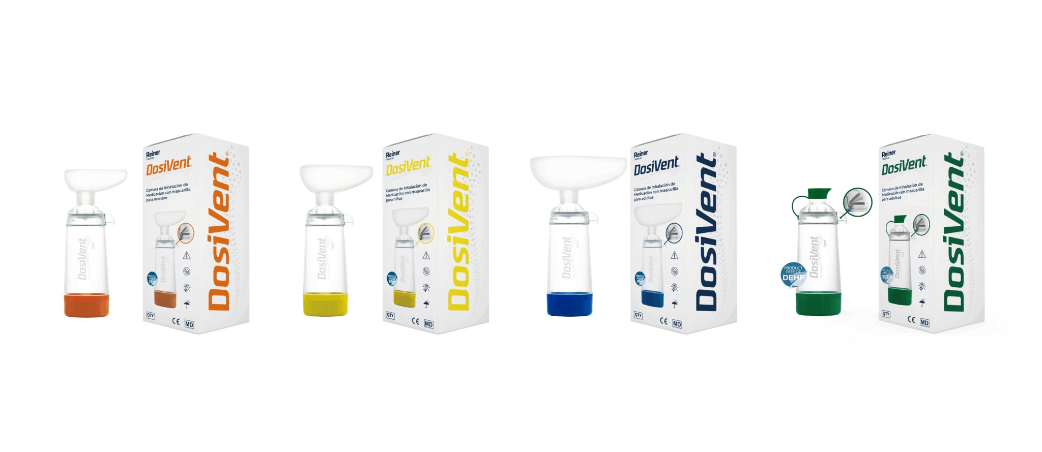 Available in four versions — Neonatal, Kids, Adult with mask, and Adult without mask — it ensures effective aerosol delivery and comfort for each patient profile.