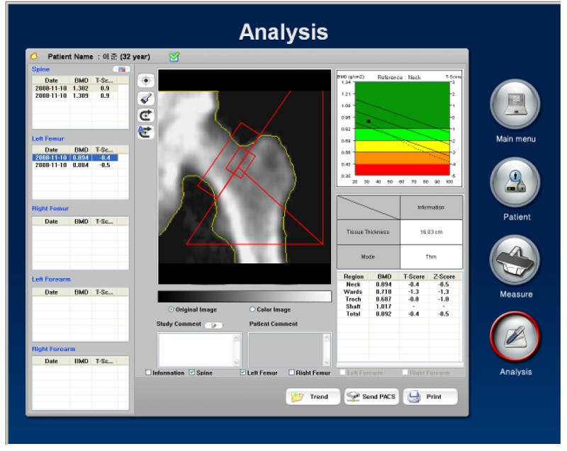 DEXA system according to the GOLD standard of the WHO