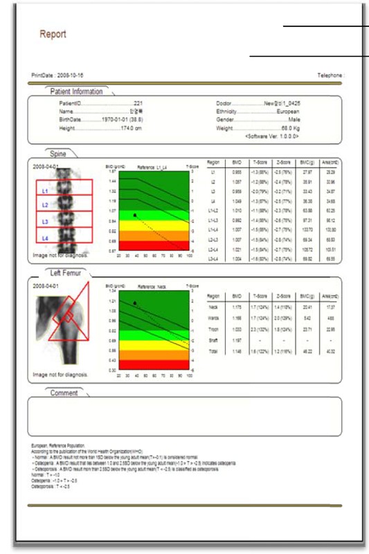 • Bone density determination on lumbar spine, femur and forearm