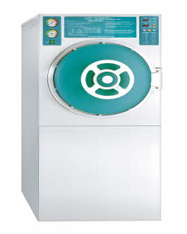 This sterilizer, which has a practical medium sized chamber between large and small sized sterilizer and is very effective to load the volumed loads, uses the saturated vapor as sterilant supplied from the built-in steam generator or external steam supply system. The cylindrical chamber with jacket is the most sound structurally and the door is sealed firmly by a locking system with radial levers. It is fully automated in all processes by means of microprocessor. If a trouble takes place, it alarms with digital display and buzzer through the self-diagnosis function, and then stops the cycles. The door system shall consist of a door and an opening/closing mechanism which shall be manually operable.