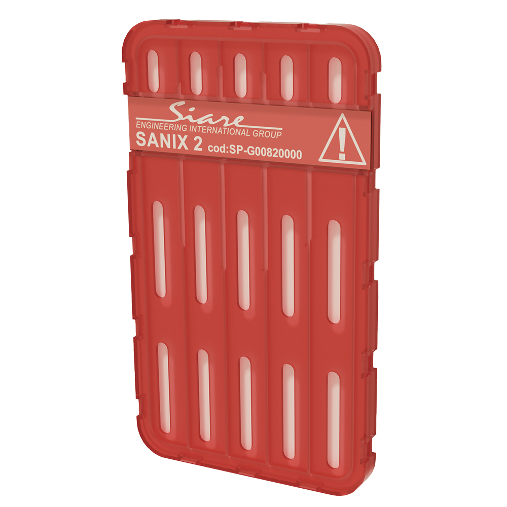 Sanix 2 is a sanitizing filter made by a plastic support inside which the absorbent material soaked in 1 ml of sanitizing solution is contained.